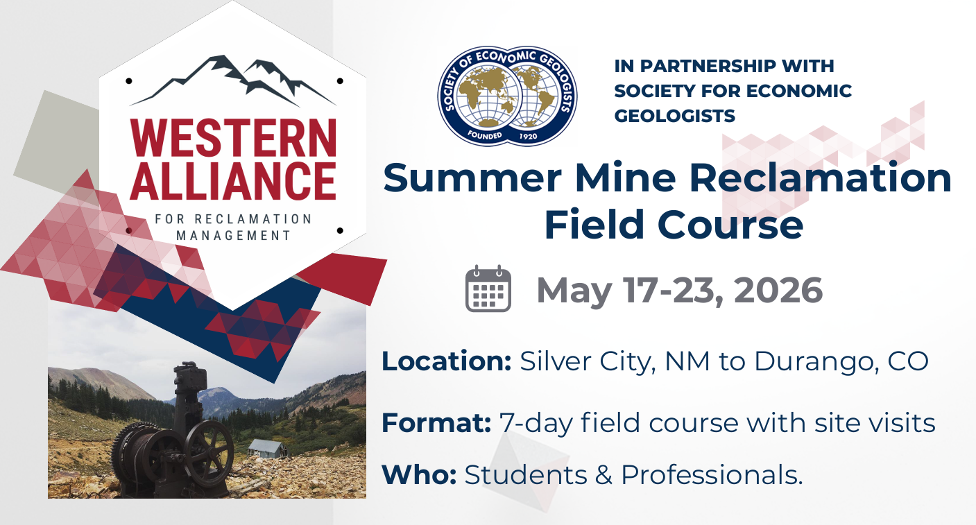 Are you an undergraduate, graduate student, or working professional interested in learning more about environmental remediation, mine reclamation, and minerals assessment? Join our co-Founder and President Luke Danielson as part of an exciting six-day field study course offered by The Western Alliance for Reclamation Management (WARM), in partnership with the Society of Economic Geologists. The course aims to provide participants with essential skills for careers in mining and reclamation such as conducting site evaluations, collecting samples, and documenting findings using industry protocols and standards. Click the image on the right to download the promotional flyer or here learn more or register now!